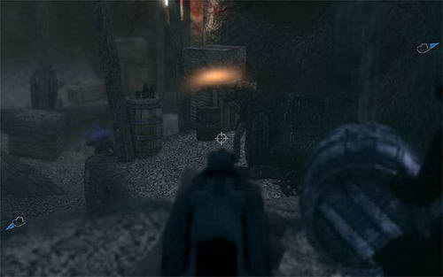 往前走一点 就又遇到敌人 小心这里的炸药桶 最好的办法是咱们先利用上