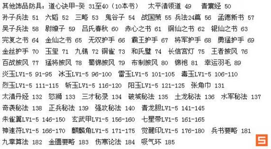 杖类:木杖 61 铜杖 62 铁杖 63 钢杖 64 梦幻杖 65 南仙杖 66 太平杖 67