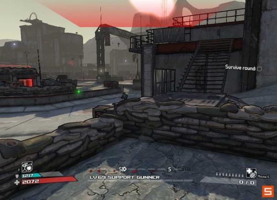 这里的好处是飞空兵需要转过一个角度才能打到你,不过前提是你有足够秒杀他们的武器,因为飞空筒子离你太近的话这地方没得躲。