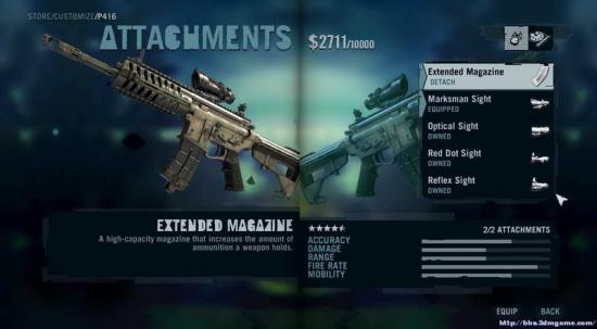 P416 游戏进入到第二个岛才能解锁,各项属性都不错但是不能加消音器。(是不是很失望~特殊武器中有它的消音强化版本我会乱说?)
