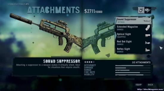 F1 法国出品的战斗步枪 射速和精准是它的特长 最重要的是它是第一把能加装消音器的步枪~潜行流玩家值得一用 不过伤害略低