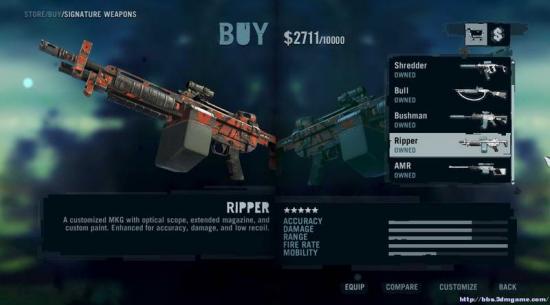 Ripper 最强班用机枪 通过6个挑战任务后解锁(就是地图上带五角星的特殊任务~不用得最高分只要你玩过哦!)自带扩展弹夹 瞄准具