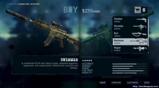 Bushman 最强战斗步枪(虽然ACE伤害较高 但是它有消音器 个人觉得实用性更高)点亮所有信号塔后解锁(应该是所有Signture weapon中最后解锁的了)