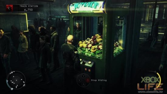 如果不小心让敌人起疑心,这时后就可以假装在玩夹娃娃机、看报纸、观赏美术品或是躲入柜子中,等待警戒值降低再行动。